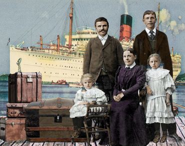 If you are interested in working with me on an image from your family collection you can use the Contact form on this site to reach me. I will need a scanned image at 460 dpi minimum, also a story or information to go along with it. I will need that to create the background.