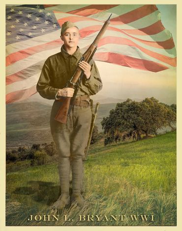 One day I was looking at a picture of my Aunt at a very young age. I realized that the picture didn't tell me much; the expression on her face and how she looked. I decided she needed more. So, I created Missouri Farm Girl. Re-Imagined portrait with an altered background. The backgrounds come from the public domain, photos from clients, and stock photographs. The Idaho Cowboy was a photo of one of my husband's relatives taken in a studio; I thought that he belonged back on the "ranch". If you are interested in a portrait I would love to hear from you!